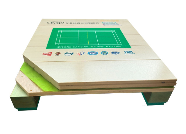 雙層板上下龍骨雙彈結構高吸震性和連續回彈性的固定懸浮式的運動木地板系統,適用于國內,國際比賽。