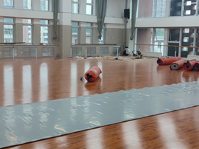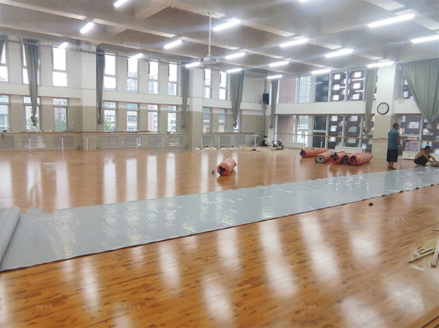 舞蹈室共500平米,采用楓樺木C級單層龍骨經濟型結構,面板鋪完上面還需要鋪一層地膠,相對于單獨鋪地膠的舞蹈室運動效果和腳感更加舒適,這種搭配不僅可以在運動中保護好學生,而且擁有更好的性價比。