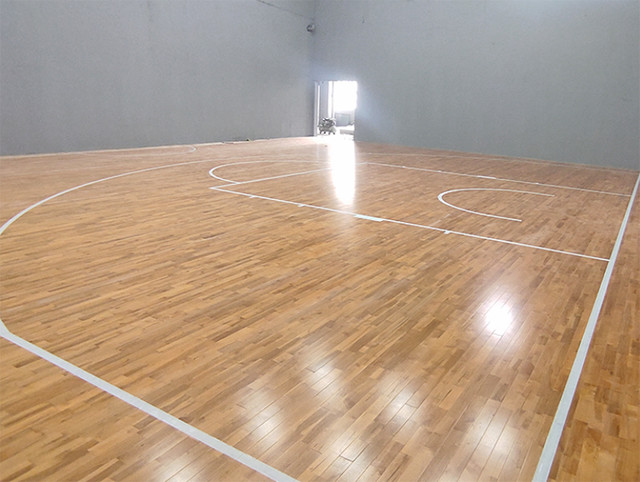 河北300平米籃球館半場完工!采用楓樺木B級加黃面板顏色略深,更突出白色的線條,在燈光映襯下顯得更加高端;底層采用單層龍骨結構,間距加密300mm,在符合場館標高的前提下使場地結構更加穩固,保證場館擁有更好的球體回彈性,更高的沖擊吸收力,有效的減輕運動員在運動時所承受的負載。