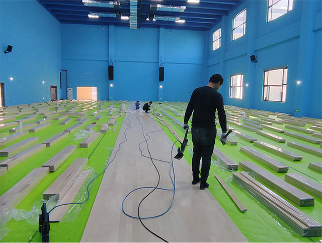 成都祥鵬機場籃球館圓滿竣工!場館共900平米,整體看著比較寬闊,采用楓樺木A級面板,原本的木質紋路和藍色墻面搭配更加突出A級地板整潔無色差光亮的特征;底層采用雙層龍骨結構,根據場館的地面進行調平后,地板更加平整,回彈性更好,地面的通風也更佳。