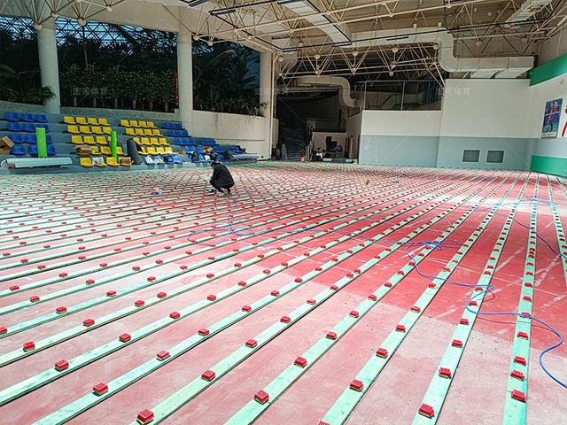 新疆移動公司羽毛球館施工中,場地共分為兩層,一層為500平米,二層為800平米,均采用楓樺木A級板式結構,二層的場地已經鋪裝完成,一層的也在緊張施工中,期待最終的效果~