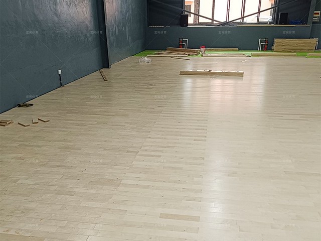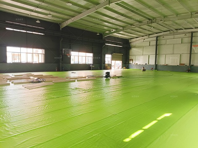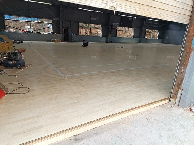 山西800平米新動力籃球館完工,該場館為一個標準的個人廠房改造,不僅要注重打球的效果,還要在此基礎上最大程度的節約成本,采用主廠區為楓樺木A級面板,邊上緩沖區為楓樺木C級面板的方案,底層使用宏憲專利膠墊,達到E1級環保,抗壓耐用。