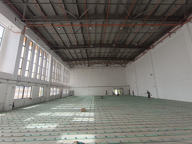 潼關縣岳瀆中學共總建筑面積約16805.06㎡,是一所新建的學校,其中籃球館、舞蹈室占地共1300平米,由宏憲體育承建,為給學生們提供更好的學習和運動環境,該籃球館采用楓樺木C級SPTFL04結構,期待最后完工效果~