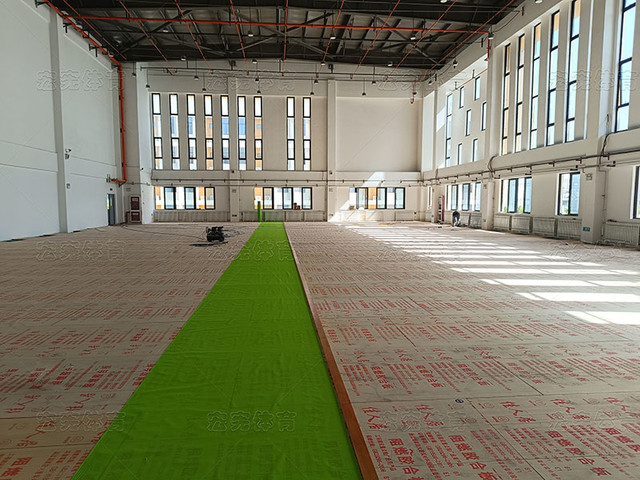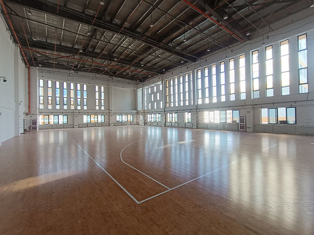 鋪上地板的場地更加鮮活寬闊,陽光透過兩邊落地窗散落,地板紋理更加清晰,柔和。
